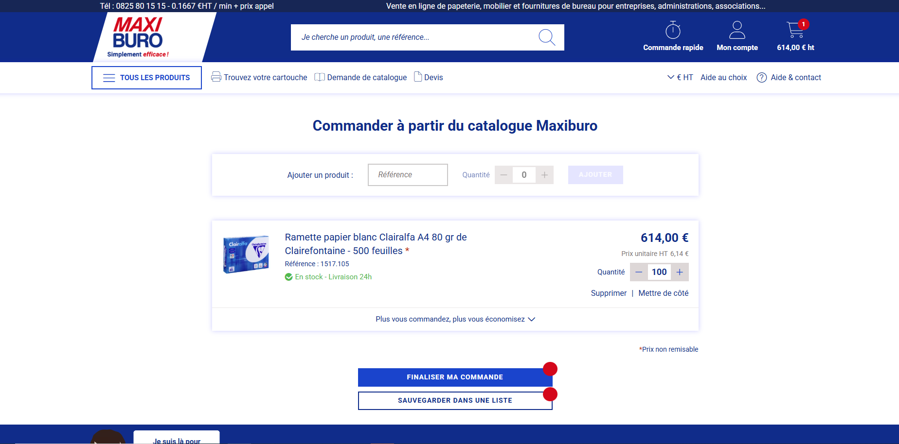 Vous avez reçu un catalogue papier, rendez-vous directement sur "Commande rapide" puis sur "Commander par références". Saisissez ensuite vos références et quantités puis cliquez sur "Finaliser ma commande".