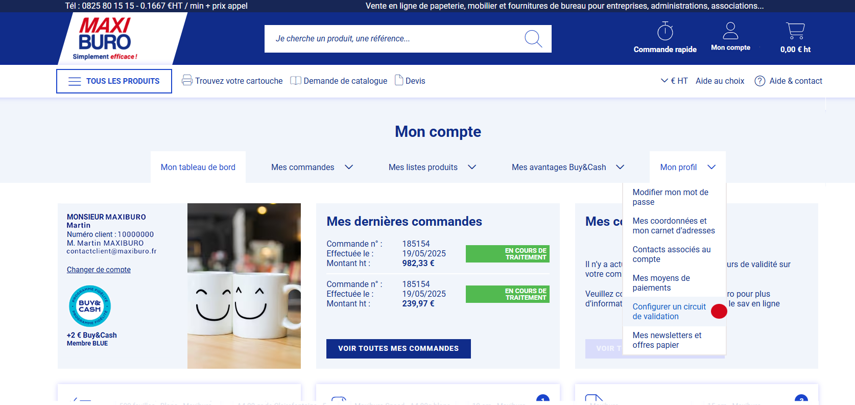 Connectez-vous à votre compte, cliquez sur "Mon espace client". Cliquez sur "Mon profil" rubrique "Configurer un circuit de validation"