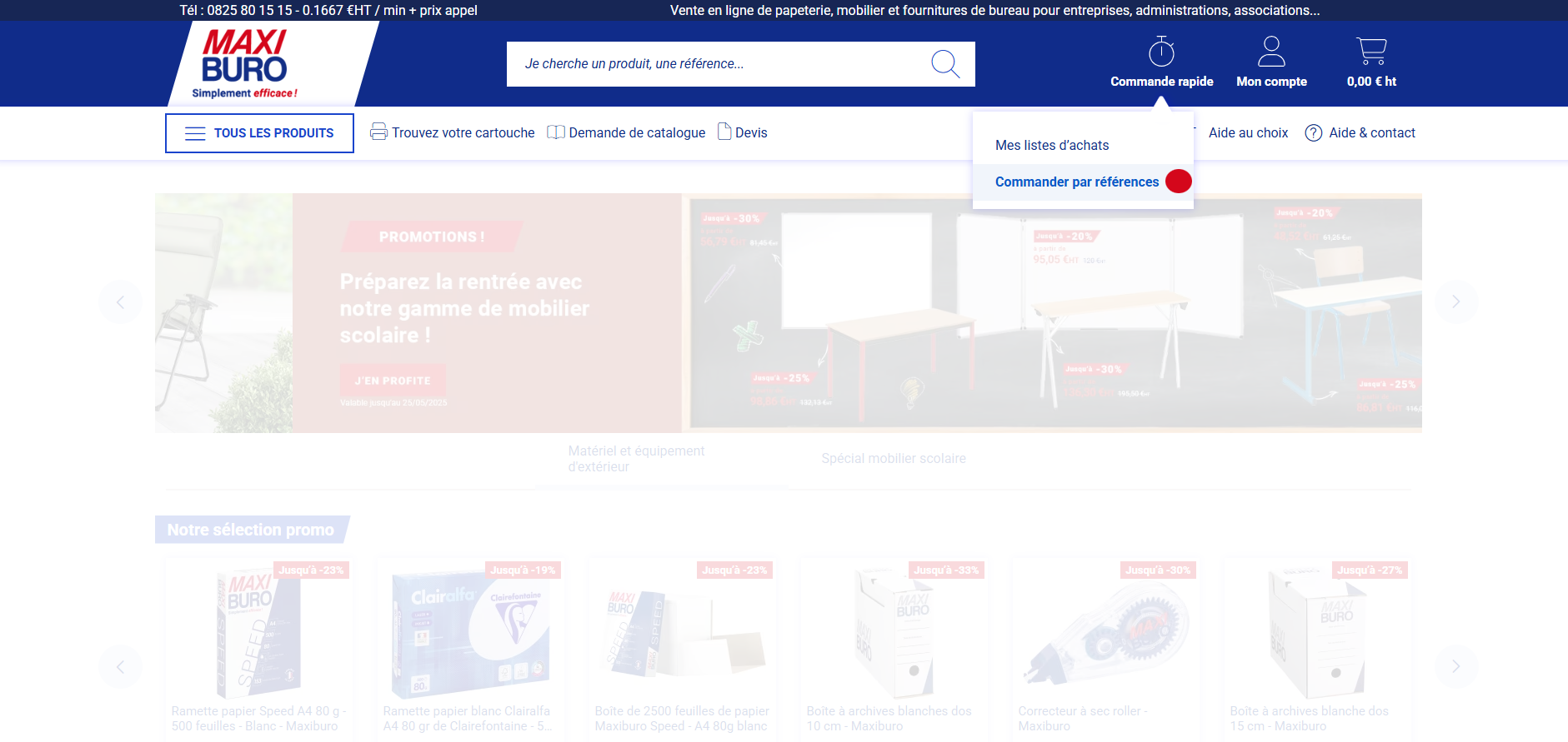 Vente en ligne de papeterie, mobilier et fournitures de bureau pour entreprises, administrations, associations...