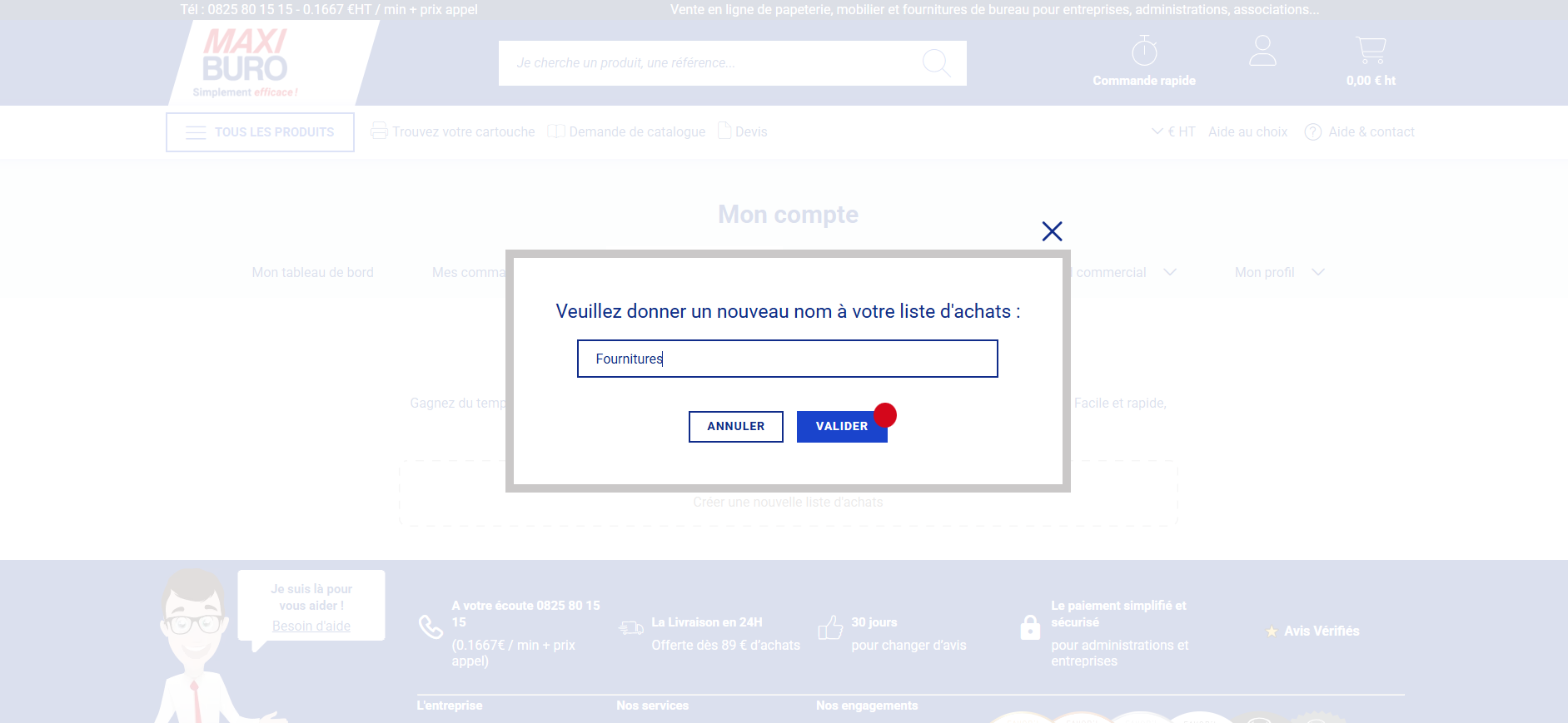 3. Nommez votre liste d'achat puis cliquer sur "Valider".