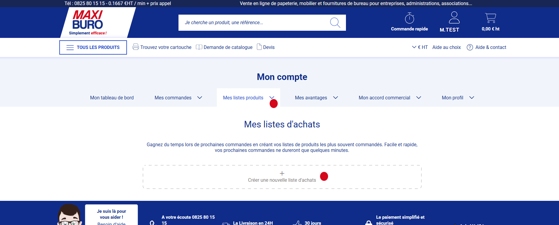 1. Après vous être connecté, glissez votre souris sur "Commande rapide" et cliquez sur "Mes listes d'achats".