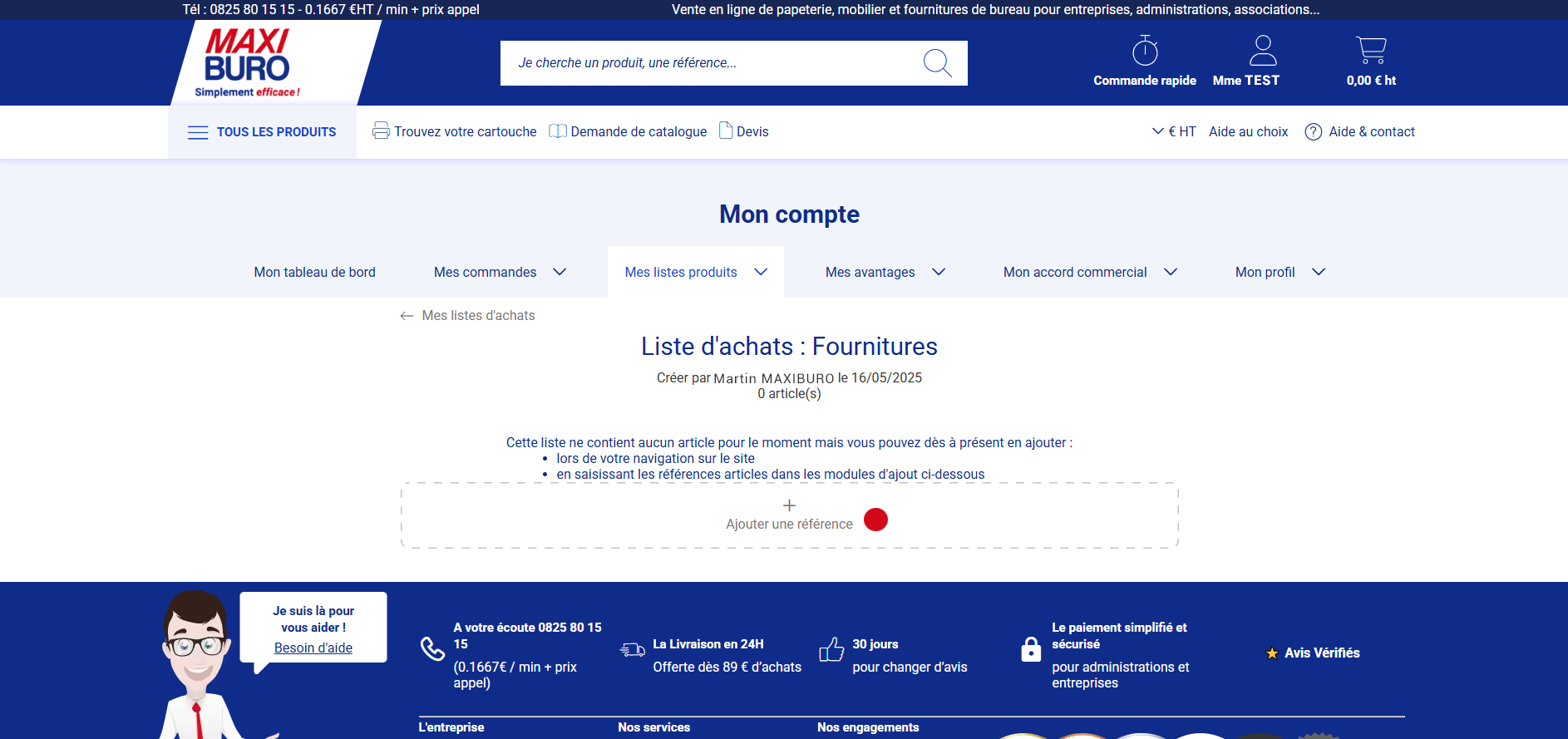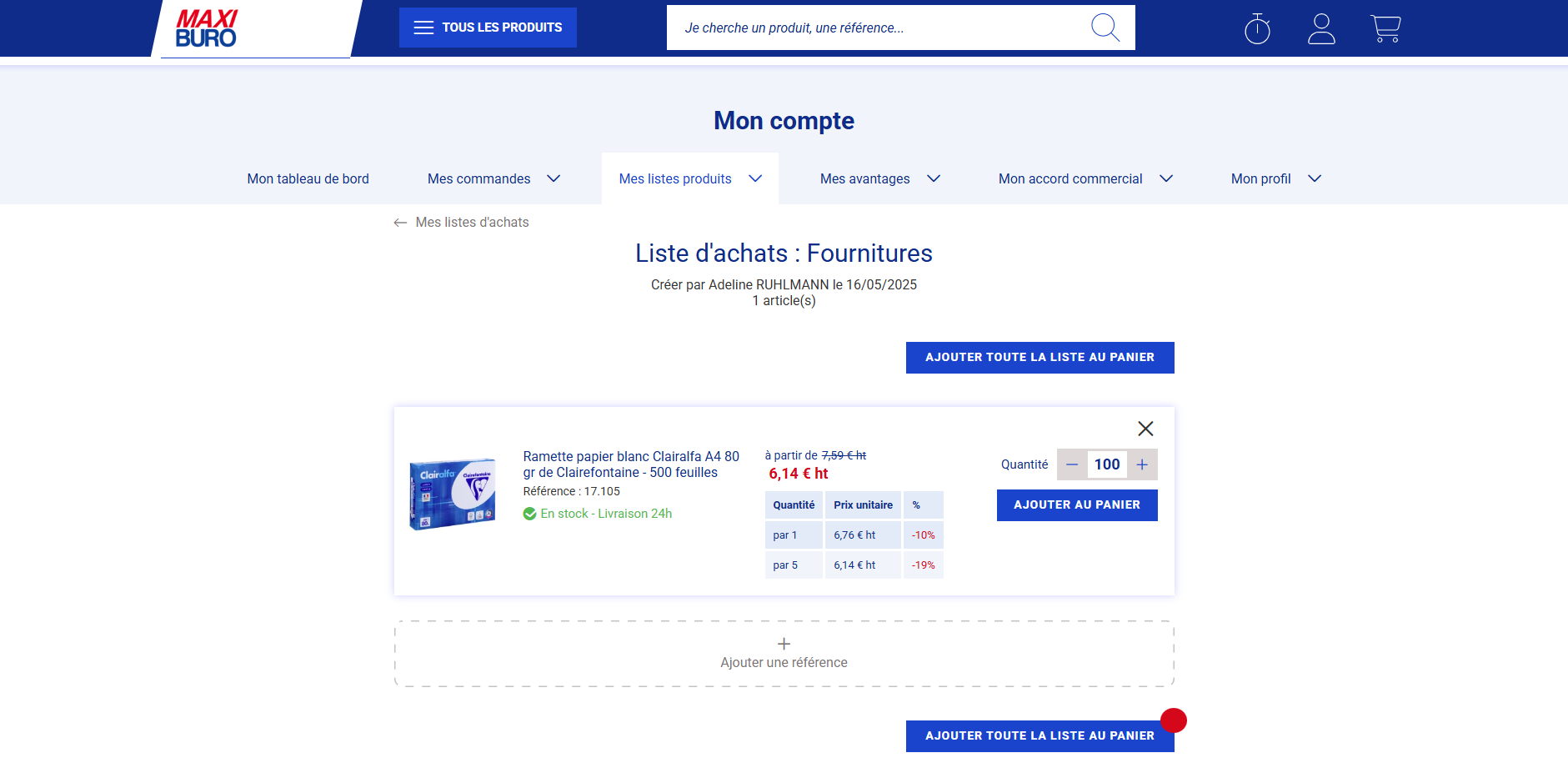 5. Une fois votre liste complète, vous pouvez ajouter, à partir de cette liste, les articles dans votre panier et passer commande.