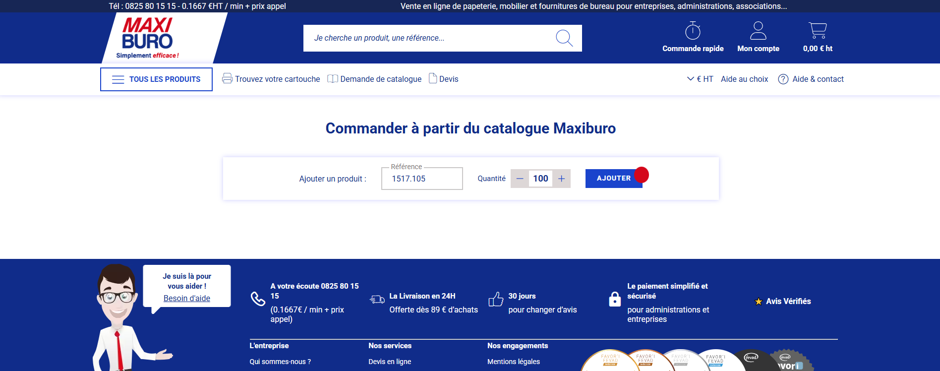 2. Tapez la référence qui vous souhaitez commander et choisissez la quantité, puis cliquez sur "Ajouter"