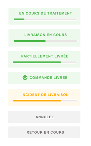 Partiellement livrée : Commande partiellement livrée, l’un des colis sera livré ultérieurement.