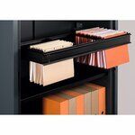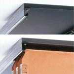 Les armoires de classement sont souvent équipées de tablettes à replis, permettant de porter les dossier suspendus. Si elle n'en dispose pas de base, il est possible d'équiper votre armoire avec des tablettes à replis, des châssis télescopiques ou des rails. Ces accessoires sont disponibles séparément à la vente.