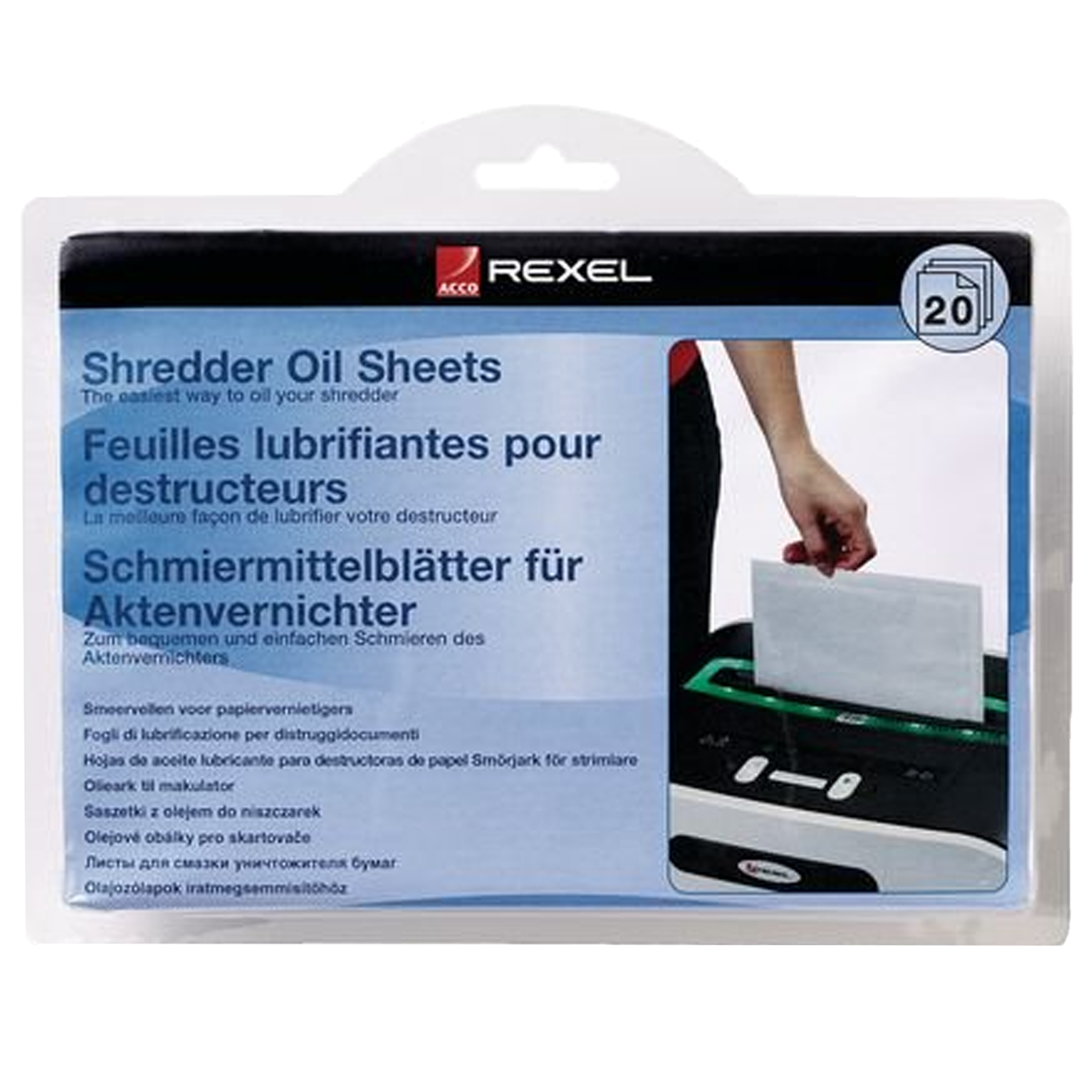 L’entretien se fait à l’aide d’une feuille spéciale huilée qui est introduite dans la fente et découpée. Pour les destructeurs à usage intensif, il convient également de remplir le réservoir avec une huile adaptée.