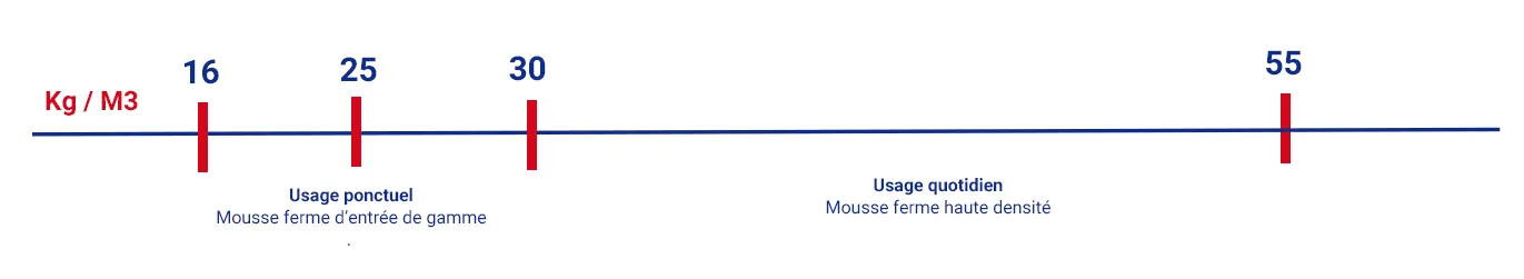 La densité de la mousse qui compose votre siège est importante car elle correspond à la densité de l'assise ou du dossier. Une mousse adaptée permet de conserver le plus longtemps possible le confort de votre siège. Son échelle démarre de 16kg/m3 et se termine vers 55kg/m3. Plus la densité est importante, plus l'assise est confortable. Et plus la mousse est dense, plus celle-ci récupère sa forme après sollicitation dans le temps. Sa densité conditionne donc la durée de vie de votre siège mais aussi son prix. Nous vous conseillons une mousse haute résilience qui vous assurera un confort optimal de nombreuses années.
