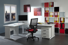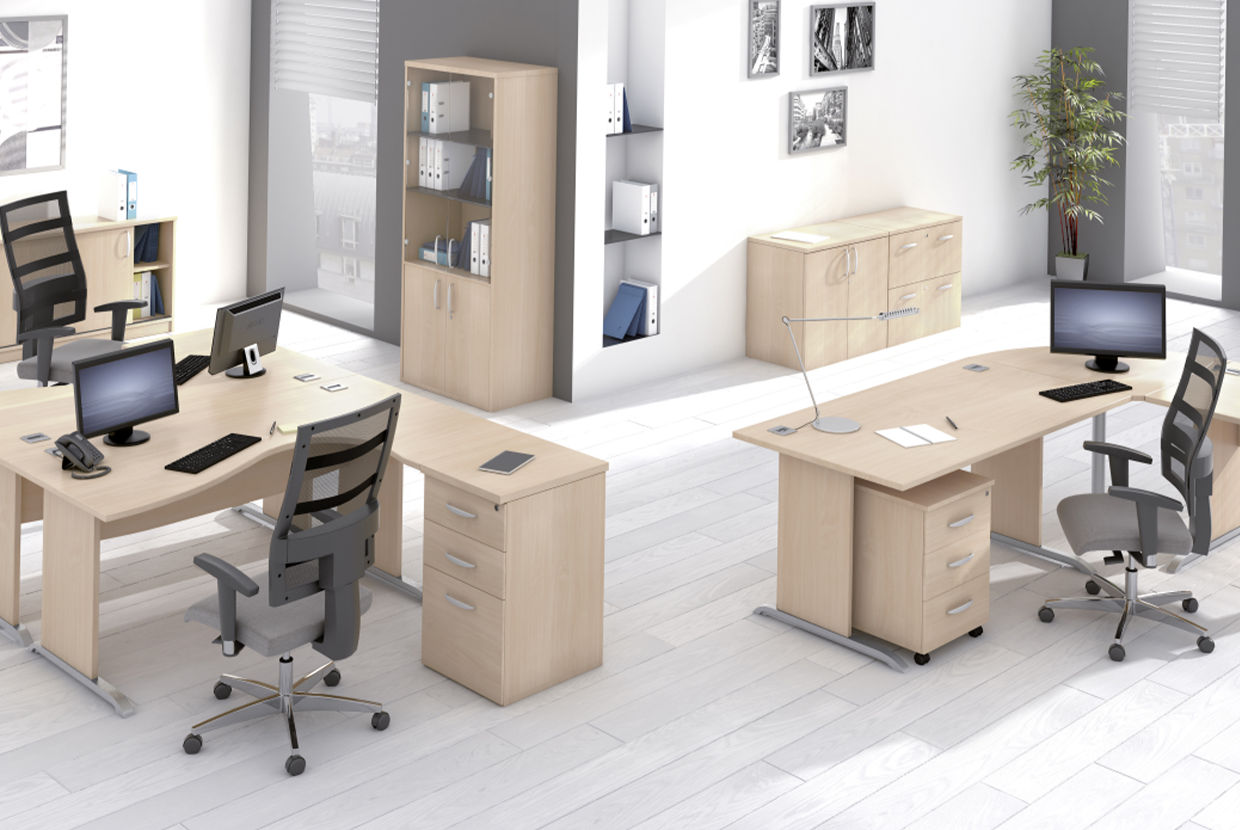 Bureaux droits, extensions, angles de liaison, caissons assortis : tout pour créer un espace de travail cohérent, stable et durable.