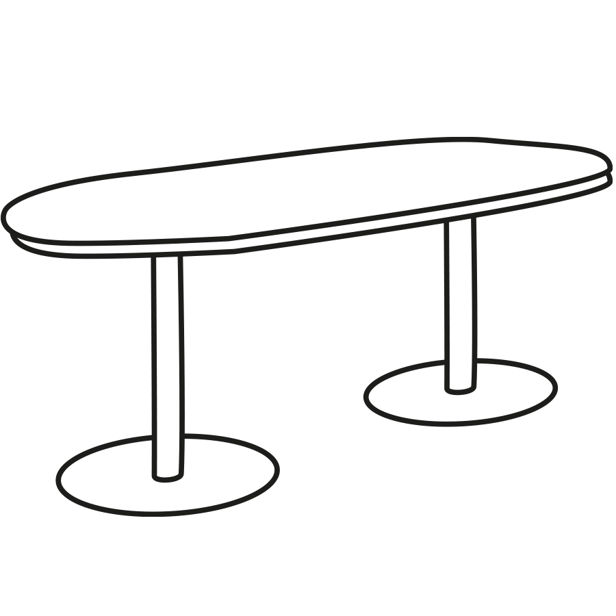 Table de réunion ovale L 210 cm plateau chêne clair piètement colonnes Essens