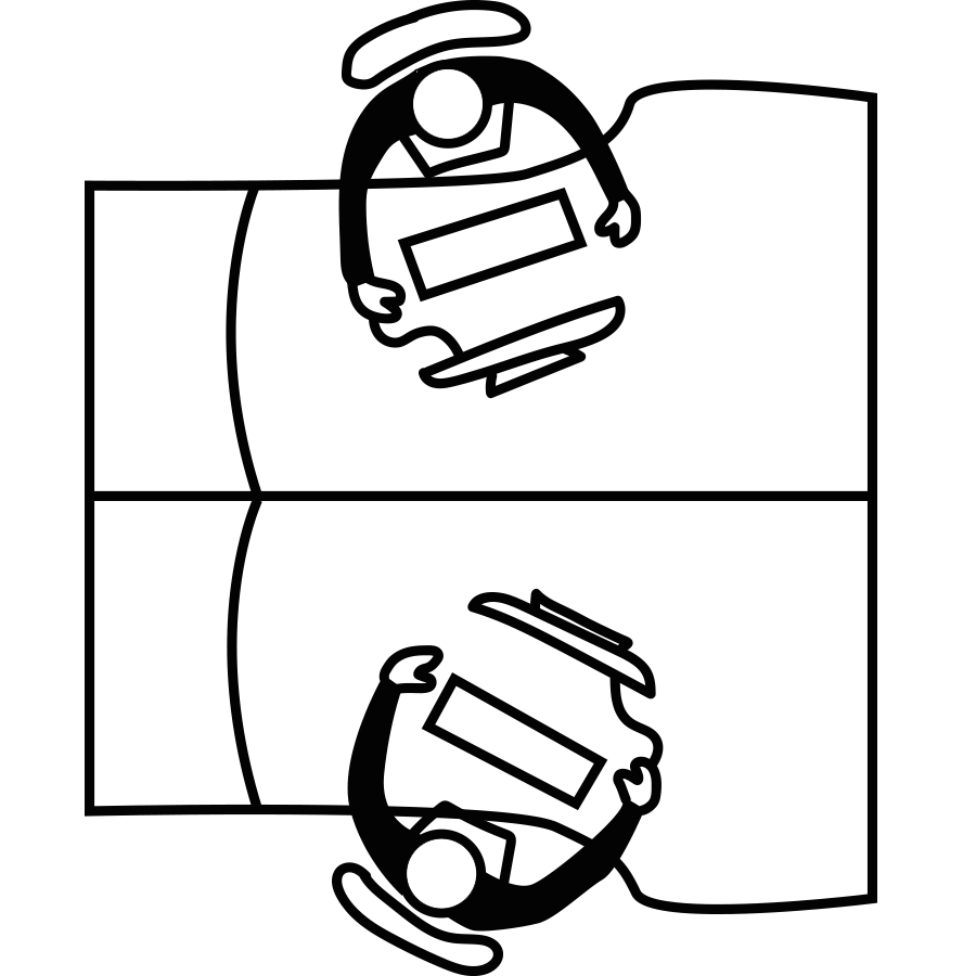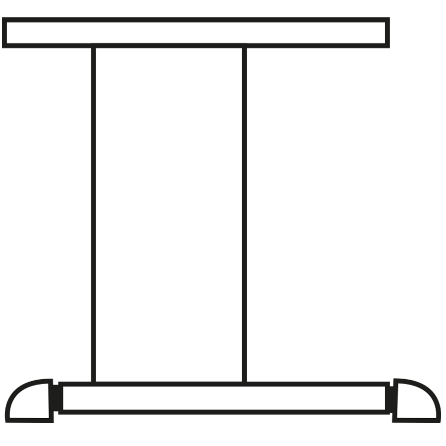 •  Chants demi-ronds antichocs épaisseur 2 mm sur avant et arrière des plateaux, même finition.
