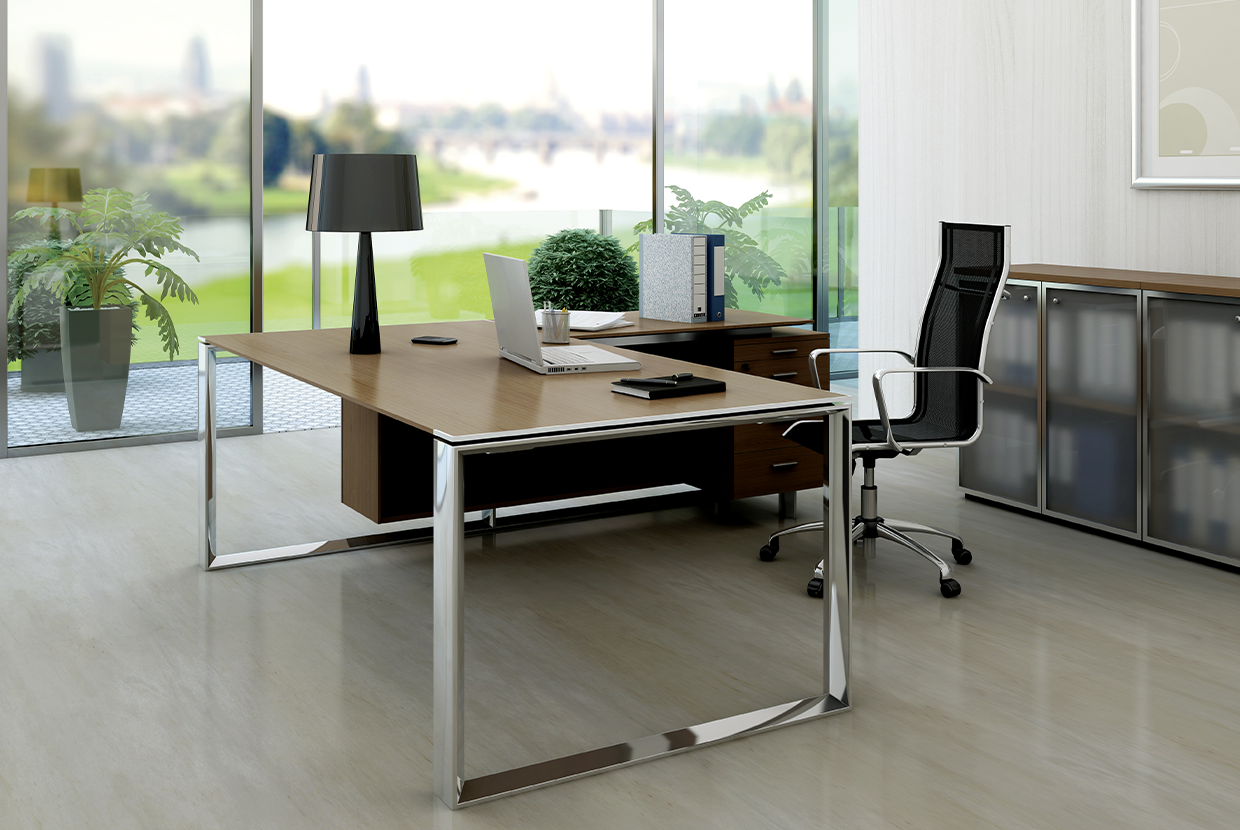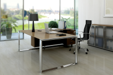 Les finitions chromées des piétements et chants latéraux ainsi que le décor du plateau proposé en blanc, noyer ou orme, confèrent à cette gamme une allure classique et élégante. Parce que la praticité est un élément déterminant dans le choix de son mobilier, les bureaux Maestro sont équipés de passe-câbles, caissons intégrés mettant en lumière leur design étudié.
