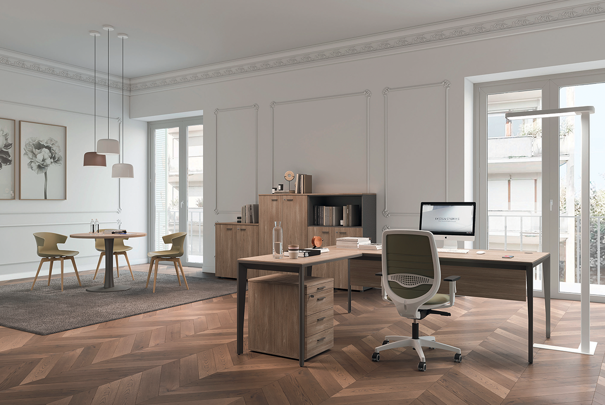 Pensée pour les espaces de direction, elle allie élégance et fonctionnalité pour créer des environnements de travail à la fois sobres et prestigieux.