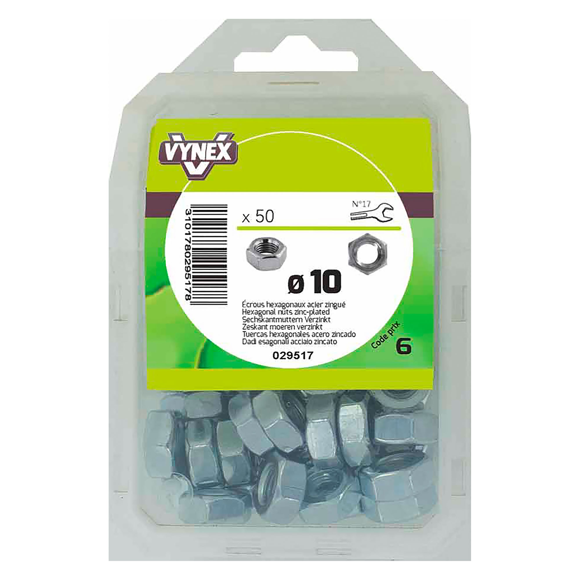 Écrou hexagonal acier zingué Ø 10 mm - Paquet de 50