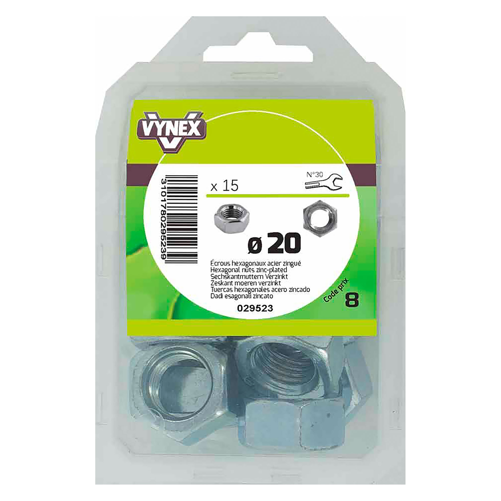 Écrou hexagonal acier zingué Ø 20 mm - Paquet de 15