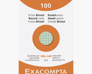 Étui de 100 fiches - bristol quadrillé 5x5 105x148mm - Couleurs assorties