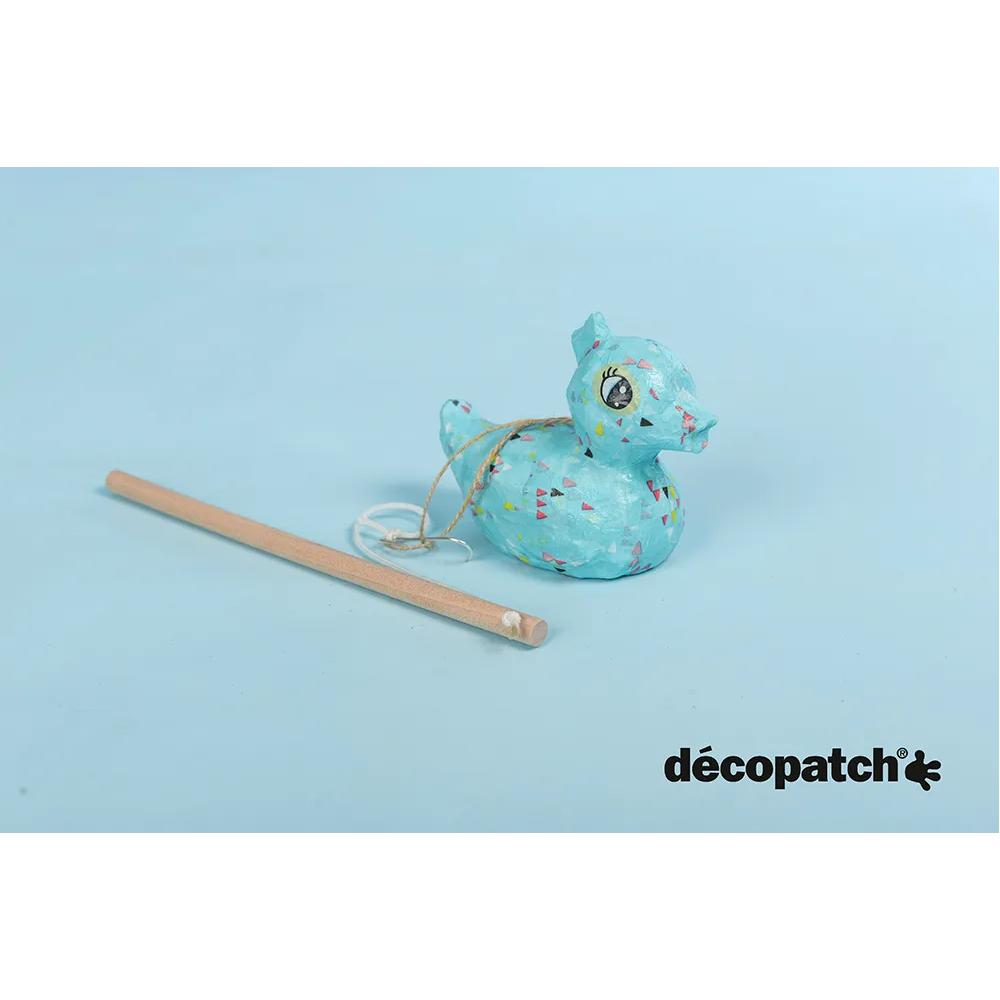 En papier mâché brun, ce support Décopatch est idéal pour être décoré selon vos envies. 1ère possibilité : le recouvrir de la peinture Gesso blanche (non fournie) avant de le peindre aux couleurs de votre choix. 2ème possibilité : le customiser avec le papier Décopatch et notre colle PaperPatch (non fournie). Rien de plus facile : déchirez ou découpez quelques morceaux de papier Décopatch d'environ 2x2 cm - Appliquez la colle sur le support. Déposez un morceau de papier sur la surface encollée et mettre une deuxième couche de colle dessus. Superposez les morceaux de papier pour recouvrir le support en mixant les couleurs et les motifs. 3ème possibilité : le recouvrir de colle PaperPatch (non fournie) puis appliquez nos paillettes Glit's par exemple (non fournies). A vous de jouer ! Chaque canard est attaché à un fil qui vous permettra de le pêcher (canne non fournie). Support Décopatch en papier mâché fabriqué à la main. Chaque produit est unique !