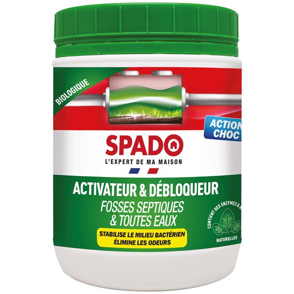 L'activateur de fosses septiques biologique de 24 doses de la marque SPADO, assure un fonctionnement optimal de la fosse septique. Réactive la flore bactérienne par un apport de nouvelles bactéries. Nourrit la flore bactérienne existante. Prévient les mauvaises odeurs. Evite les engorgements. Espace les vidanges. Biodégradable. La gamme biologique de SPADO utilise un processus naturel, non chimique, qui élimine la pollution sans engendrer de déséquilibre ni de dysfonctionnement du milieu naturel. Des solutions simples et efficaces, une action totale de dégradation des graisses et des résidus. Contient : aucune substance dangereuse.