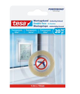 19 mm x 1,5 m, ruban adhésif double-face, très fort, adhère