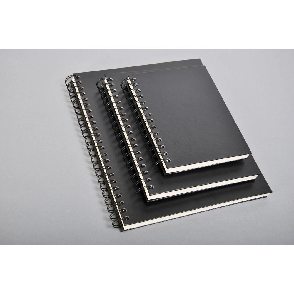 Carnet élégant, spiralé sur le grand côté. Couverture noire, imitation cuir. Papier bouffant ivoire micro-perforé au grain très léger. Parfaitement adapté aux techniques sèches. Permet de dessiner rapidement sans crainte d'appuyer, d'estomper ou de gommer.