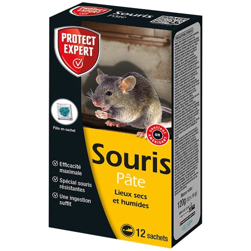 L'appât pâte suris en 120 g de chez Protect Expert est prêt à l’emploi, la pâte PROTECT EXPERT est un rodenticide très appétent qui permet l’éradication des souris. Efficace dès les premières ingestions. Son action se manifeste par des hémorragies internes mortelles. Leur mort paraît naturelle et ne provoque aucune méfiance chez leurs congénères, ce qui permet de détruire l’ensemble de la colonie. La formulation huileuse de la pâte garantit une haute appétence. Il est utilisé dans les lieux comme les caves, locaux d’élevage, bassescours, entrepôts… Conseils, l'appât prêt à l’emploi en sachets est à utiliser dans des postes d’appâtage sécurisés et convenablement étiquetés. Il suffit de déposer le sachet sans l’ouvrir. Les plus du produit une efficacité maximale, spécial souris résistantes, une ingestion suffit.