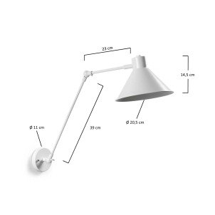 Applique articulé, avec bras et abat-jour en métal. Pour ampoule E14 non comprise.- Applique murale articulée