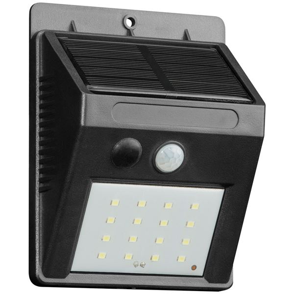 L'applique murale solaire 270 lumens avec détecteur de mouvement IP 44 coloris noir de chez Vidis est équiées de 16 leds. Le mise en route est automatique par détecteur de mouvements. La minuterie est de 30 secondes. L'applique est fabriquée en plastique de haute qualité. Il s’agit d’un éclairage mural extérieur autonome fonctionnant à l’énergie solaire. L’applique produit une luminosité de 270 lumens, suffisante pour éclairer une entrée, un chemin ou une terrasse. Elle est équipée d’un détecteur de mouvement, ce qui permet à la lumière de s’allumer automatiquement lorsqu’une présence est détectée, optimisant ainsi la sécurité et l’économie d’énergie. Sa protection IP44 garantit une résistance aux projections d’eau et à la poussière, ce qui la rend adaptée pour un usage extérieur. La couleur noir correspond à la finition du boîtier, apportant un aspect moderne et discret.