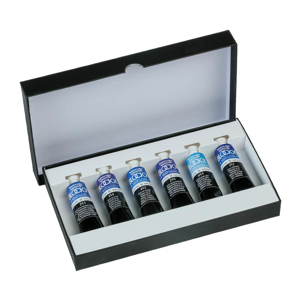 Coffret comprenant 6 tubes d'aquarelle BLOCKX de 15ml. Les aquarelles extra-fines BLOCKX présentent toutes un degré de résistance à la lumière exceptionnel (note de 7/8 sur l'échelle de m esure internationale BWS). Composé de pigments rares, très finement broyés, enrobés de gomme arabique et de miel pour renforcer la résistance dans le temps des couleurs et leur donner d'avantage d'éclat et de luminosité, les aquarelles BLOCKX offrent une brillance et une texture onctueuse.