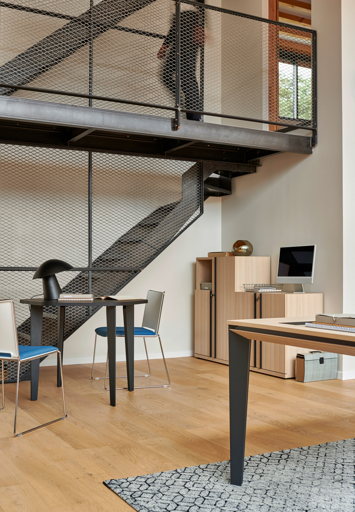 Des poignées en métal noir, alignées dans le sens de la hauteur pour une totale cohérence avec le code de la collection.