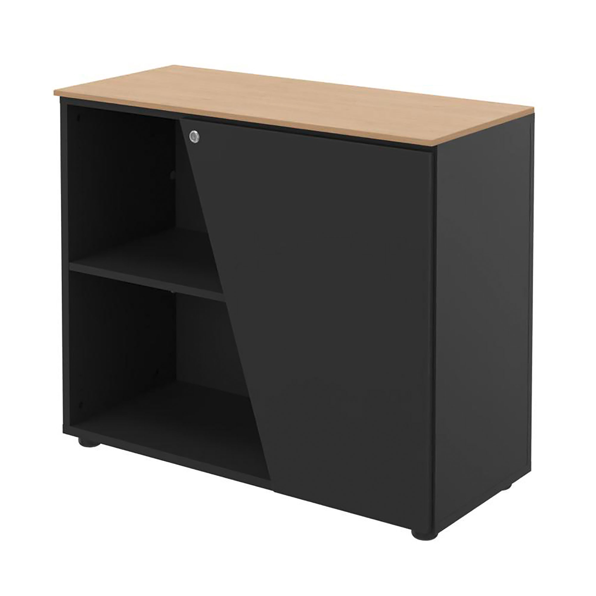 Armoire basse 1 porte avec design asymétrique et finition élégante.