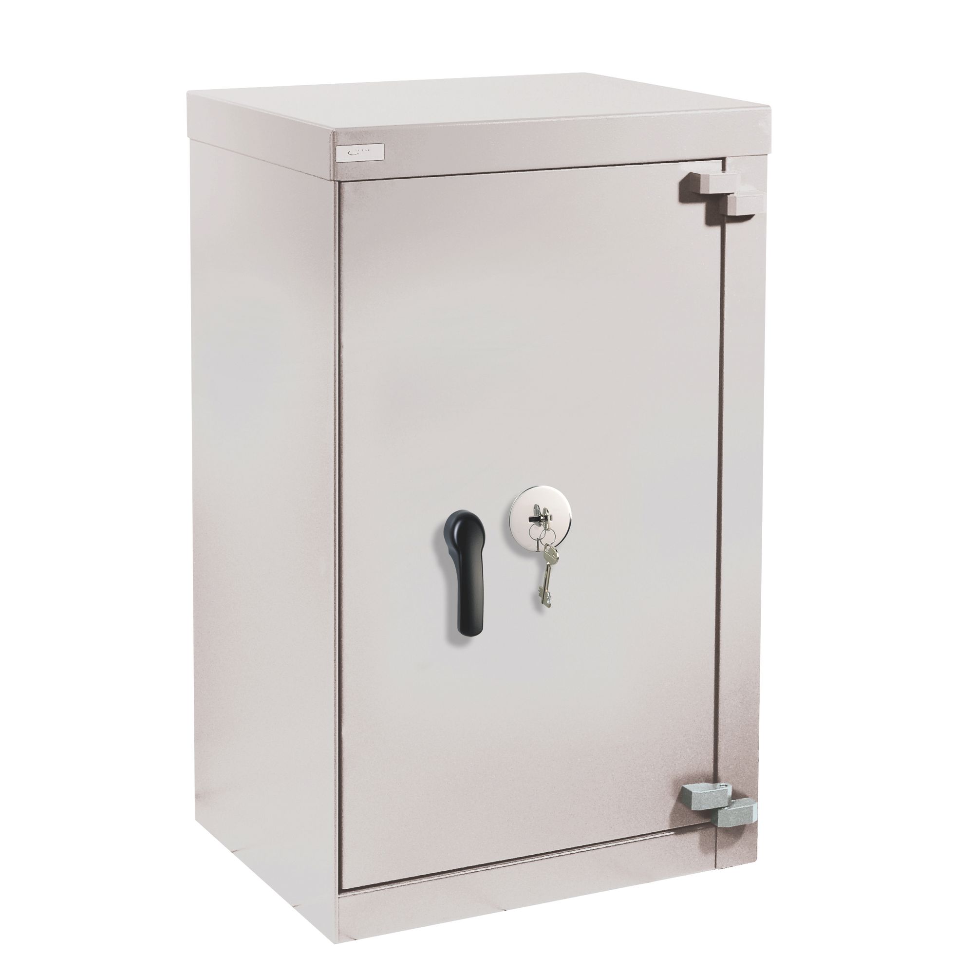 6 pênes diamètre 20 mm ( 2 hauts - 2 bas – 2 latéraux ). Corps et porte en tôle d’acier 1er choix 20/10. Blindage manganèse de la porte. Ouverture à 180°. Feuillures imbriquées assurant à l’ensemble corps/porte une excellente résistance à l’arrachement. Finition peinture époxy coloris Ivoire RAL 1015. Délateur mécanique, bloque l’armoire en cas d’attaque.