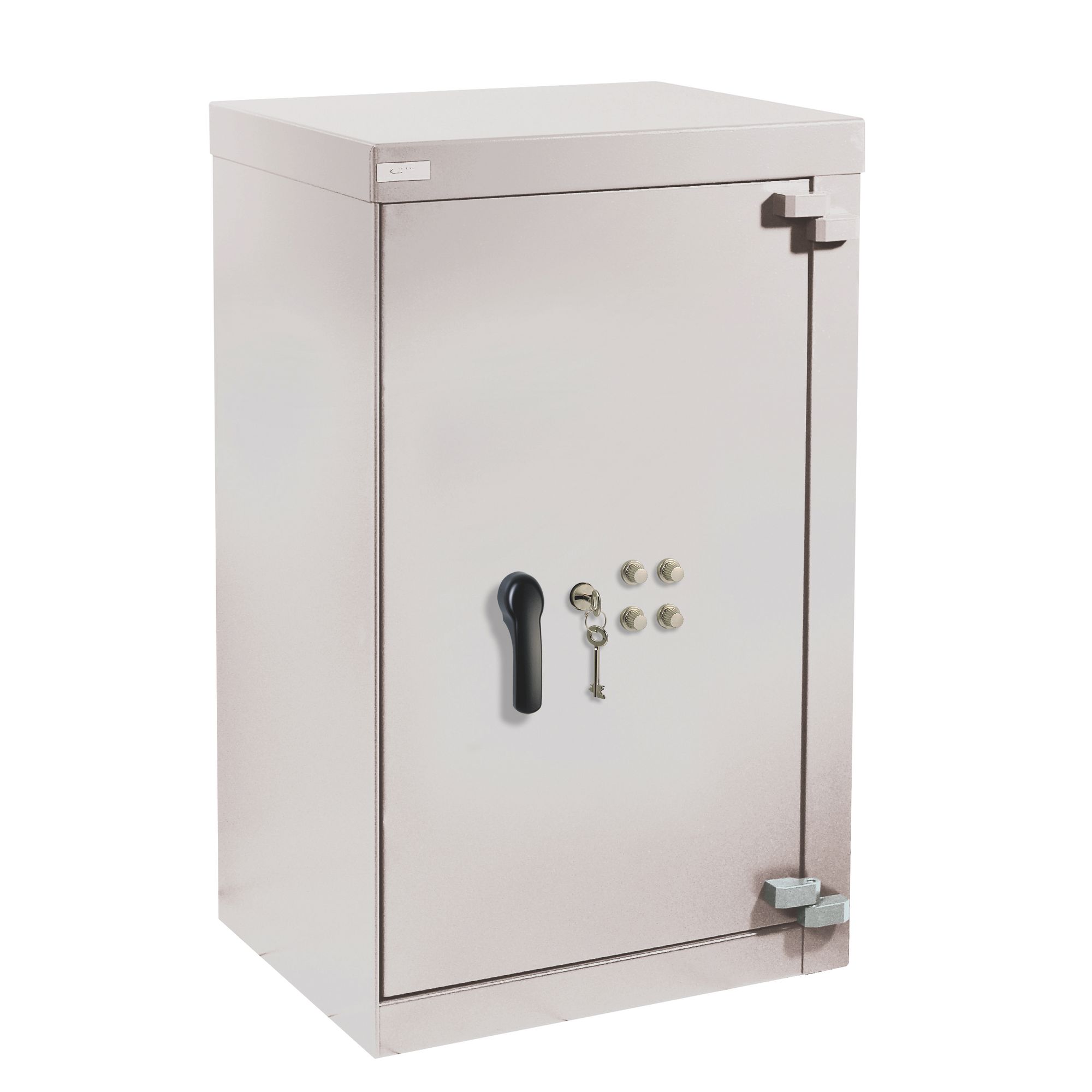 6 pênes diamètre 20 mm ( 2 hauts - 2 bas – 2 latéraux ). Corps et porte en tôle d’acier 1er choix 20/10. Blindage manganèse de la porte. Ouverture à 180°. Feuillures imbriquées assurant à l’ensemble corps/porte une excellente résistance à l’arrachement. Finition peinture époxy coloris Ivoire RAL 1015. Délateur mécanique, bloque l’armoire en cas d’attaque.