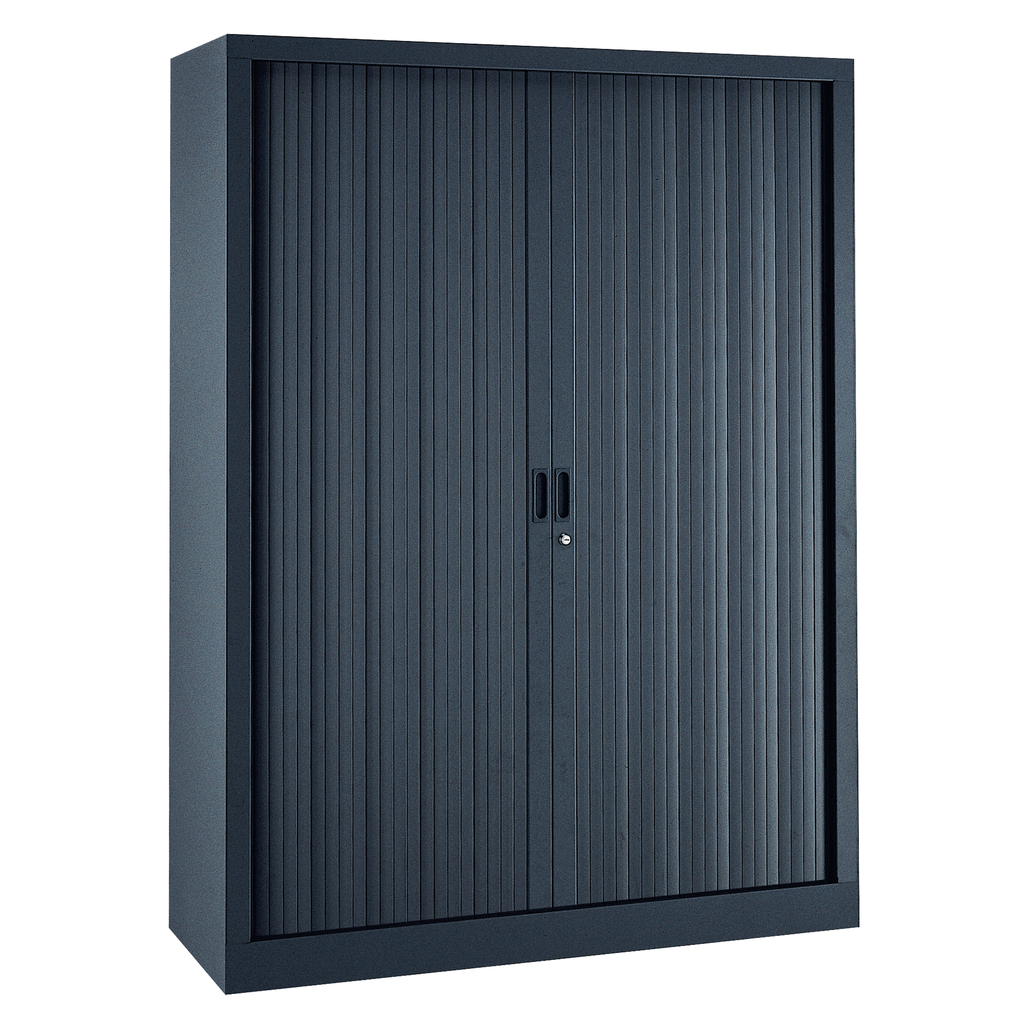 Rideau PVC, lamelles 25 mm, s'escamotant totalement dans les parois pour un accès et une visibilité totale du contenu de l'armoire. Poignées encastrées. Serrure 2 clés (1 articulée).