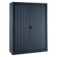 Tablettes noires réglables tous les 2,5 cm avec replis pour dossiers suspendus. Partie supérieure de l'armoire équipée pour recevoir des dossiers suspendus.