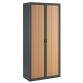 Fermeture : rideaux à lamelles PVC 25 mm. Finitions de rideaux : hêtre. Poignées encastrées noires. Serrure avec 2 clés fournies dont 1 articulée.