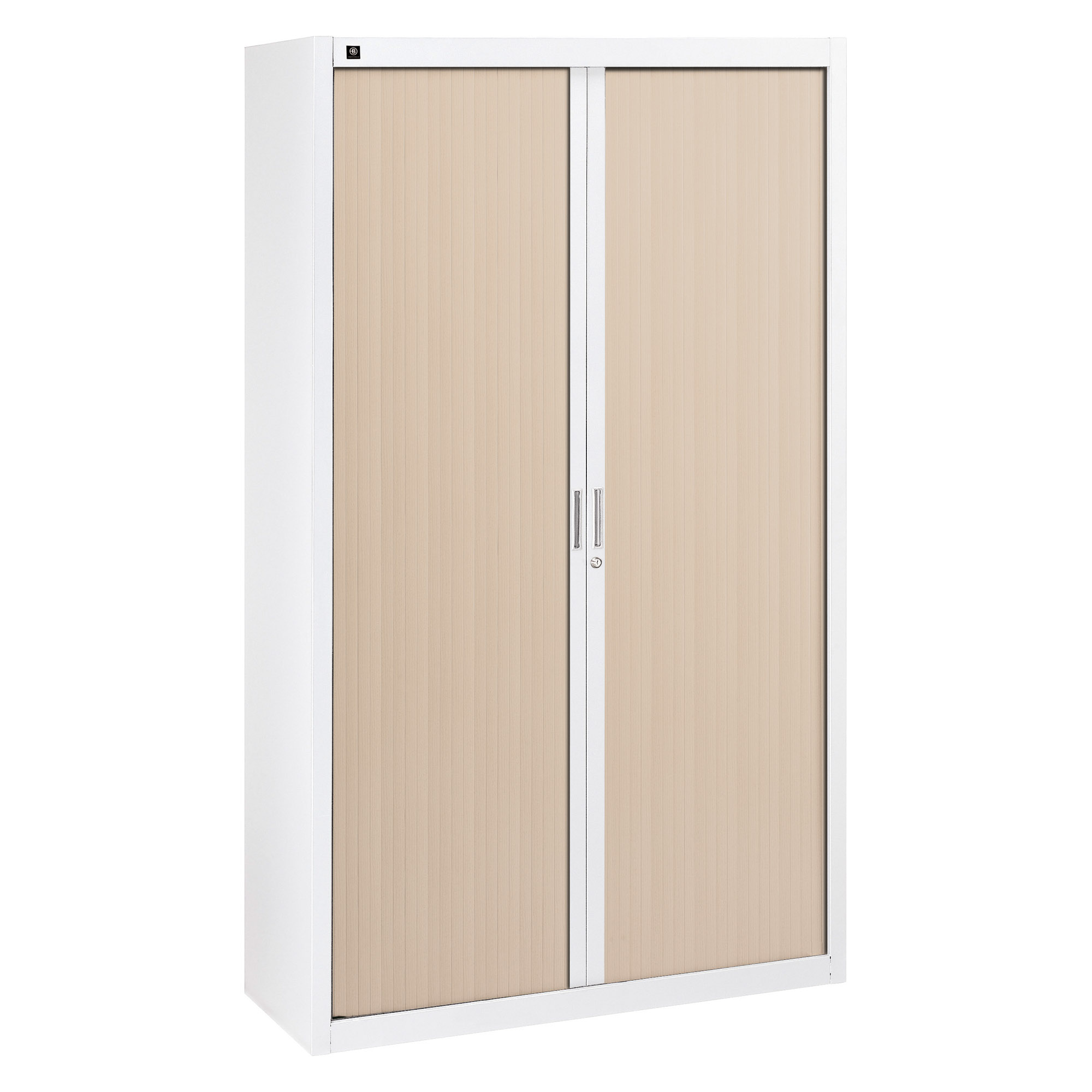 Fermeture : rideau PVC, lamelles 25 mm, s'escamotant totalement dans les parois pour un accès et une visibilité totale du contenu de l'armoire.
