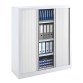 Tablettes avec replis pour dossiers suspendus, coloris assorti au corps de l’armoire, réglables en hauteur tous les 2,5 cm. Partie supérieure de l’armoire équipée pour recevoir des dossiers suspendus.