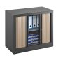 Fermeture : rideaux à lamelles polypropylène 30 mm non feu M3, s’escamotant totalement dans les parois latérales de l’armoire. Lame terminale acier profilé laqué époxy, coloris assortis au corps de l’armoire. Serrure (2 clés fournies dont 1 articulée).