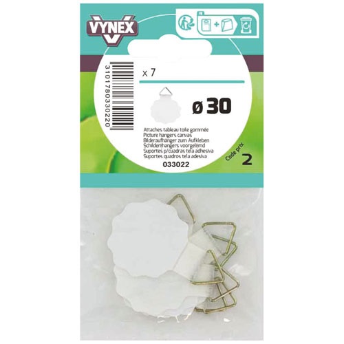 Produits similairesAttache tableau toile gommée d.45mm sc X44,95 € HTCrochet de porte - 2 têtes - H : 18 cm - l : 3 cm - blanc5,35 € HTCrochet à tableau N°2 - lot de 95,89 € HTAnneau tableau acier nickelé 18mm sc6,29 € HTAttache tableau toile gommée assortiment sc4,95 € HTCrochet adhésif - rond - inox7,39 € HT