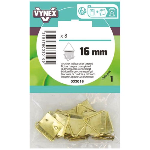 Produits similairesAttache tableau triangle laiton 14mm sc x94,19 € HTAttache tableau triangle laiton 10mm sc4,19 € HTCrochet à tableau N°1 - lot de 125,89 € HTCrochet de porte - 2 têtes - H : 18 cm - l : 3 cm - blanc5,35 € HTCrochet à tableau N°2 - lot de 95,89 € HTAttache tableau toile gommée assortiment sc4,95 € HT