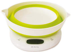 Balance rétractable - Bol Up - Balance culinaire avec bol rétractable pour un rangement plus compact ! - Une fois repliée, cette balance se glisse facilement dans un tiroir pour être toujours à protée de main et peser tous vos aliments y compris les plus volumineux ! - Ecran LCD 5,6 x 2,2 cm - Touche On/Off - Tare automatique - Portée 5 kg - Graduation 1 g - Fonctionne avec 1 pile CR2032 fournie - Coloris Blanc & Vert Pomme - Garantie 5 ans.