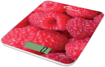 Balance de cuisine 5 kg Framboises - Slim - La balance de cuisine décor Framboise s’utilise au quotidien pour peser vos ingrédients afin de réaliser toutes vos recettes - Ultra plate pour un rangement ultra compact ! - Ecran LCD pour une meilleure visibilité - Touches sensitives - Touche On/Off - Plateau en verre lavable facilement - Légère : 550gr - Portée 5 kg - Graduation 1 g - Pile CR2032 fournie - Garantie 5 ans