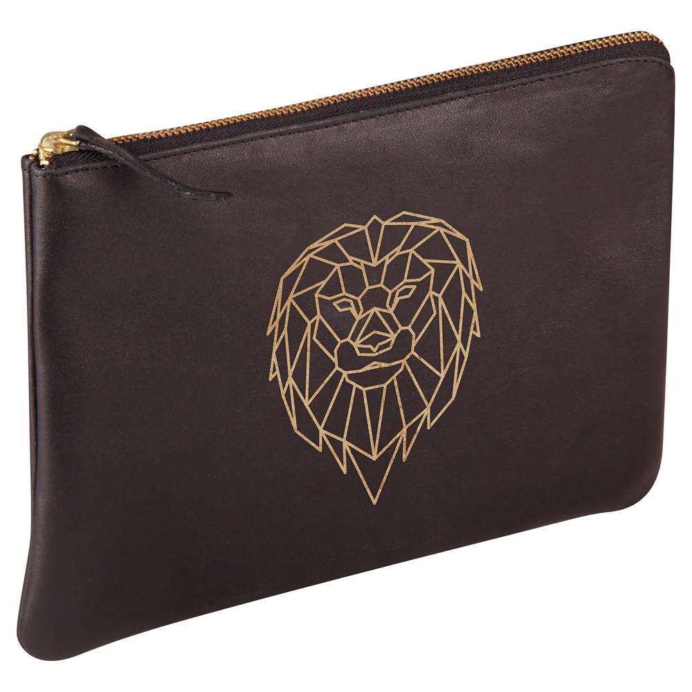 En véritable cuir d'agneau, souple et agréable au toucher. Le tannage est végétal aux extraits entre autres de mimosa et quebracho et sans chrome ni arsenic afin de préserver l'environnement ainsi que les opérateurs sur place. Multifonctionnelle, cette pochette est parfaite pour organiser votre quotidien : un usage scolaire (crayons, feutres, régle graduée, cahier A5...), une trousse de maquillage (rouge à lèvres, lunettes de soleil, mascara...) une trousse de voyage (crème, brosse à dents, dentifrice), ou encore une pochette pour votre tablette ... À vous de choisir ! Un lion majestueux est imprimé par la technique de la dorure à chaud. Cet animal mythique, symbole de force et de régénération, valorise votre pochette élégamment. Mixte, elle convient parfaitement aux hommes comme aux femmes. Pratique : elle se glisse facilement dans votre sac à main ou votre sac de travail pour vous accompagner partout : voyage, école, travail, loisirs... Notre gamme de maroquinerie propose des produits hautement qualitatifs et tendances. Nos produits en cuir sont pensés, fabriqués et testés avec la même exigence que nos produits de papeterie. Nous mettons tout notre savoir-faire au service de vos besoins.