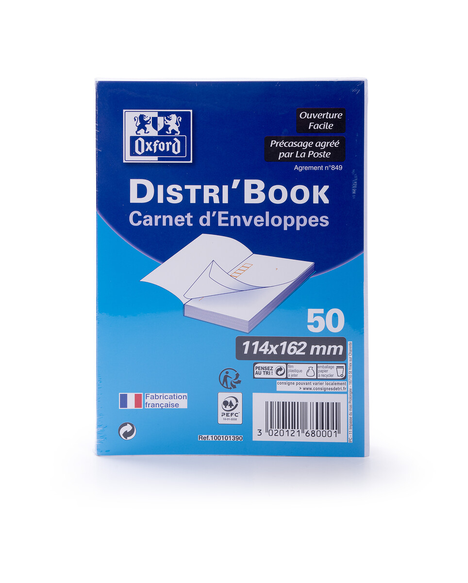 FORMAT : Le format C6 (11,4x16,2cm) des enveloppes blanches est parfaitement adapté aux documents A4, pliés en 4. CONDITIONNEMENT : Les 50 enveloppes sont rassemblées dans un bloc distributeur (Distri'Book). Elles sont maintenues ensemble par une bande collante afin d'éviter qu'elles ne tombent. Cela permet également de les détacher très facilement. RESISTANCE : La matière des enveloppes, en papier extra blanc opaque, à épaisseur 90g, est résistante. PRATIQUE : Les enveloppes sont précasées. Elles ont chacune un espace imprimé, spécialement dédié à l'écriture de l'adresse pour un rendu professionnel et de qualité.