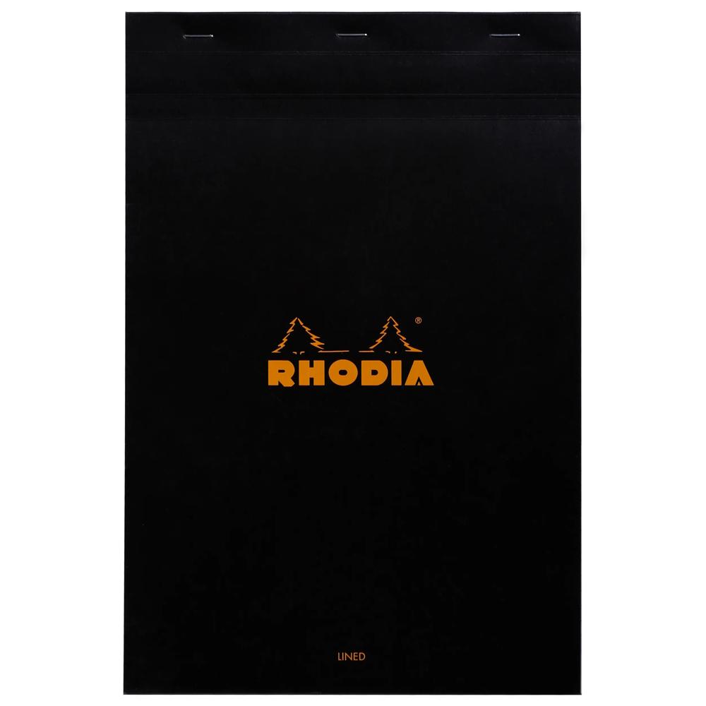 Bloc agrafé Rhodia N°19 21x31,8 cm 80 feuillets ligné avec marge 80g - Noir