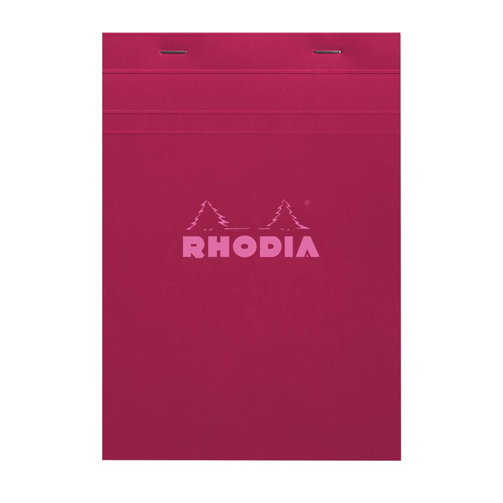 Bloc agrafé Rhodia Couleurs Prune N°16 A5 14,8 x 21 cm 80 feuillets petits carreaux 5x5 80g. Ultra-fonctionnel et ultra-simple, le bloc Rhodia est LA référence des blocs agrafés ! 80 feuillets détachables microperforés, réglure rose. Sole cartonnée rigide permettant la prise de note même sans appui. Papier Clairefontaine vélin surfin 80 g/m2 certifié FSC. - Prune