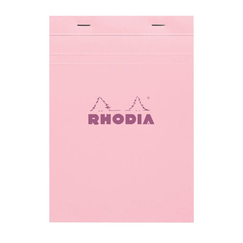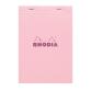 Bloc agrafé Rhodia Couleurs Rose N°16 A5 14,8 x 21 cm 80 feuillets petits carreaux 5x5 80g. Ultra-fonctionnel et ultra-simple, le bloc Rhodia est LA référence des blocs agrafés ! 80 feuillets détachables microperforés, réglure rose. Sole cartonnée rigide permettant la prise de note même sans appui. Papier Clairefontaine vélin surfin 80 g/m2 certifié FSC. - Rose