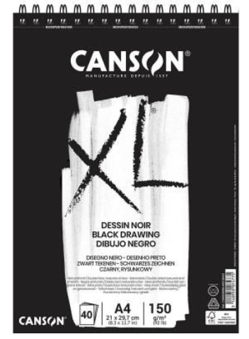 Description détaillée40 feuilles, 150 g/m2, 297 x 420 mm, bloc spiralé petit côté, avec microperforations, idéal pour feutres, crayons et pastel, couleur: noir profond
