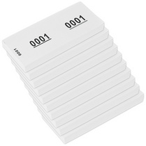 Description détailléeTickets de vestiaire en papier, 70 g/m2, numéroté de 1 à 1.000, divisé par jeux de 100 (1-100, 101-200, etc.), avec microperforations