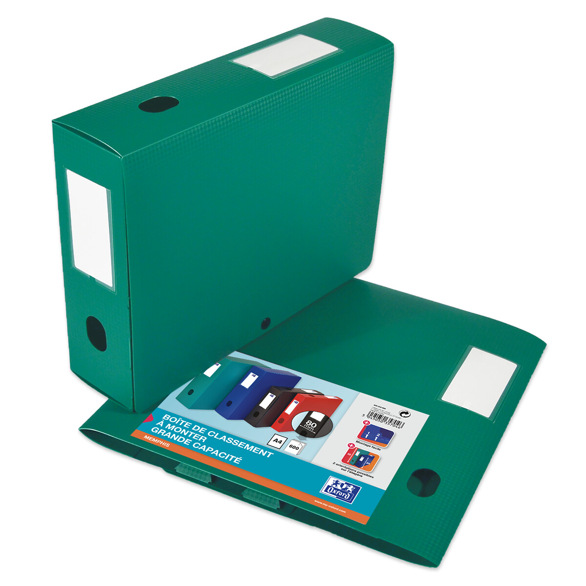 FERMETURE : Le contenu de la boîte de rangement plastique est sécurisé grâce au système de fermeture par un bouton pression noir. Les documents sont protégés et bien maintenus. PREHENSION : La boîte de rangement Memphis, livrée à plat, est dotée de deux œillets de préhension : Un sur le grand côté et l'autre sur le petit côté. La boîte est très maniable et elle est facile à sortir d'une étagère. CAPACITE : La boîte de rangement 24x32cm dispose d'un dos de 80mm et offre une grande capacité de rangement car elle permet de stocker 600 feuilles en moyenne. Ce produit est disponible sous les versions de couleurs suivantes : - Bleu - Noir - Rouge - Vert