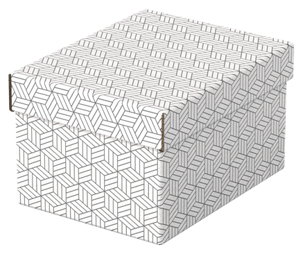 Description détailléeEn carton ondulé 100% recyclé, avec couvercle amovible, double paroi et fond, surface essuyable, bicolore, design géométrique, dimensions: (L)200 x(P)255 x (H)150 mm contenu: 3 boîtes